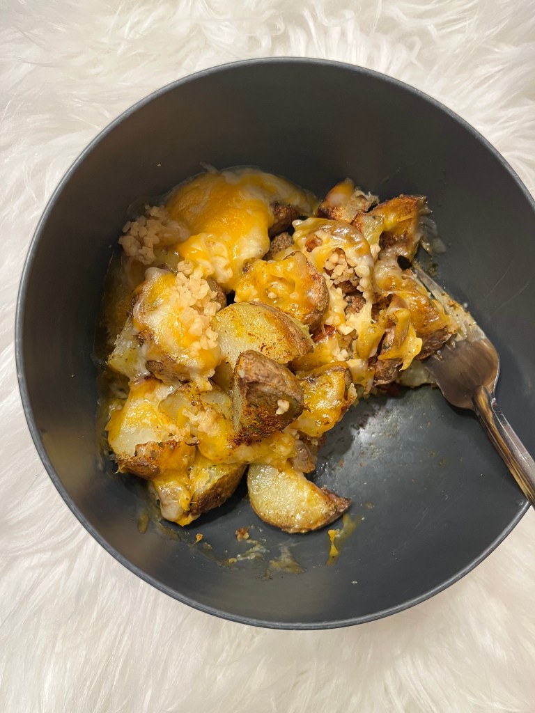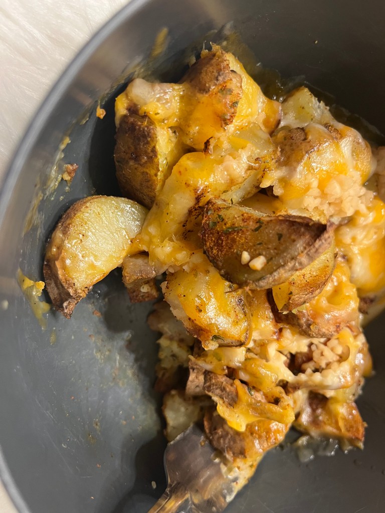 tAKE POTATOES WEDGES/FRENCH FRIES TO THE NEXT LEVEL BY ADDING FOUR CHEESE MEXICAN CHEESE, MINCED GARLIC, AND SPRINKLING PARSLEY, PARMESAN CHEESE, AFTER TAKING THEM OUT OF THE OVEN, AND THEN USING CHILI POWDER, GINGER, CUMIN, CURRY, AND GARLIC POWDER WHEN YOU BAKE THE WEDGES.